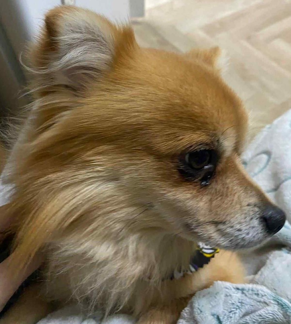 Bear a 4 year old pomchi – pom x chi who is being rehomed due to no fault of his own. He is currently in a foster home and is proving to be a very well behaved dog. Bear is fully housetrained but will only toilet on grass so some area of lawn in an outside space is a must.