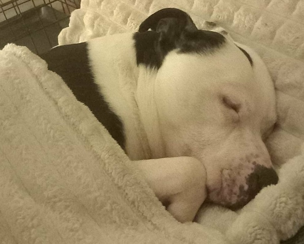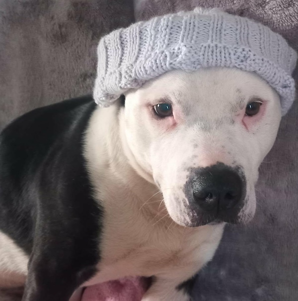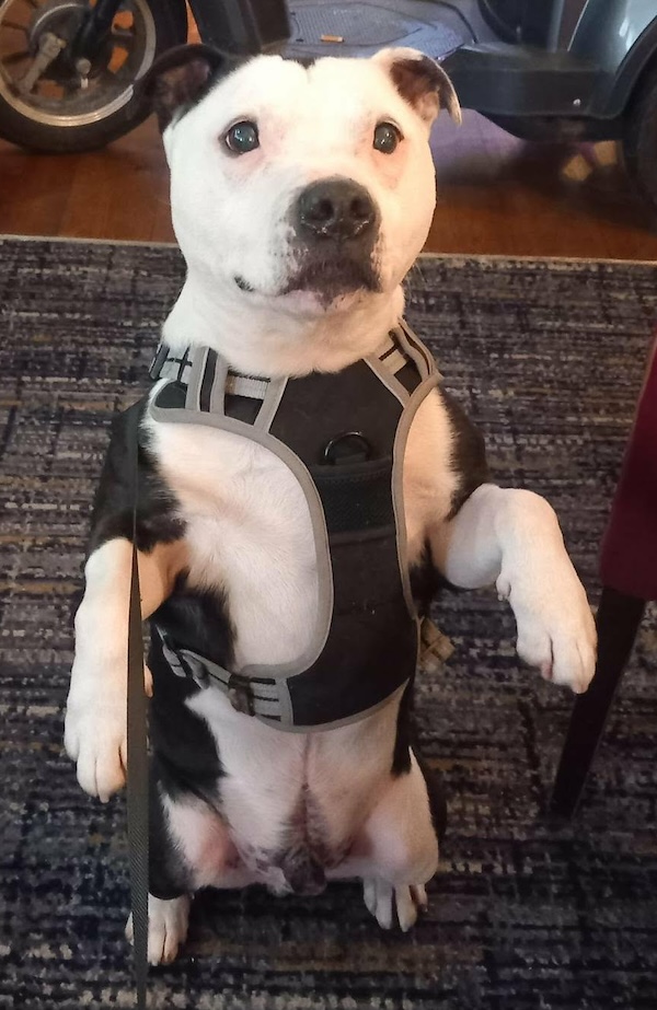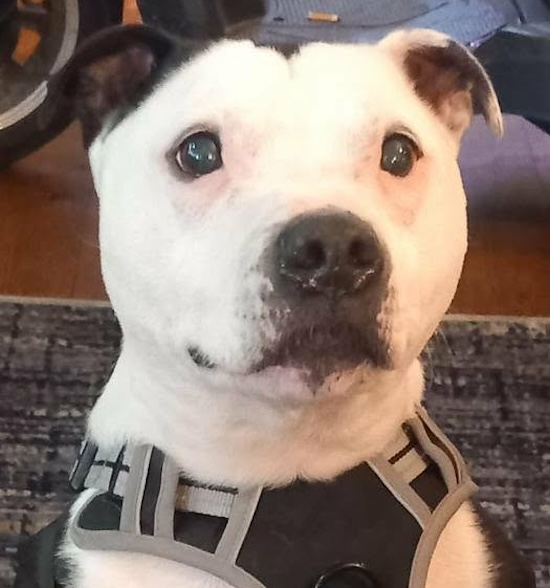 Bones (or Marvin as his fosterer prefers to call him) is a staffy who came in to us a few months ago in a very emaciated condition. We think he is around 9 years of age.