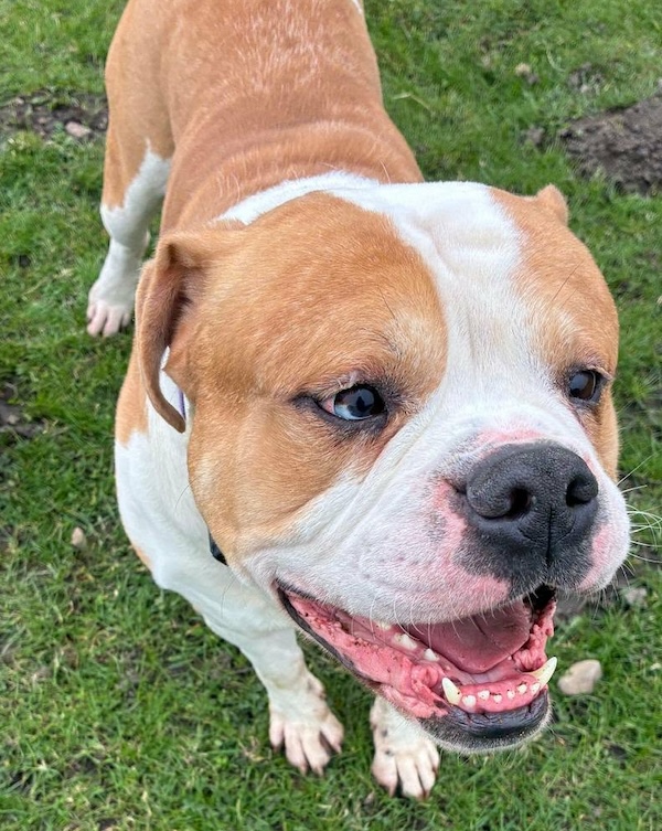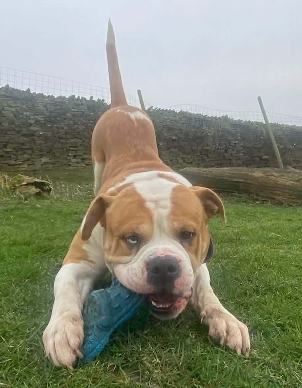 Buddy is a 3 year old Bullbreed, he is a boisterous and playful young boy. Buddy is strong on the lead and ideally, successful applicants will have previous Bullbreed experience. Buddy unfortunately can’t be rehomed to a family with small children, only children 12 years and above please.
