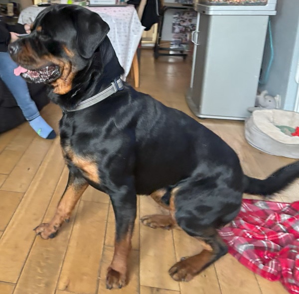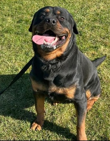 He is a 2 year old Rottweiler and a big bouncy boy who doesn’t realise his size. He does know basic commands but needs to learn some manners. Dee is crate trained and fully house trained. He likes his toys and is not destructive, he is a big lovable boy who will greet you when you come into the home.