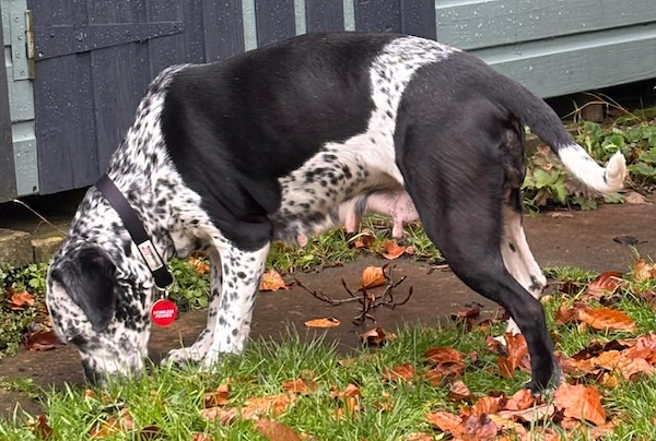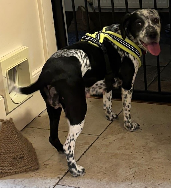 Dottie was never walked so going on walks now is very exciting for her, but her paws are very soft so walks need to be increased gradually till her pads harden up. When the walk starts she pulls on the lead but soon settles down once she starts to use her nose and sniff things. For a dog that hasn’t been walked much recently, she isn’t nervous of being outside and likes to explore. She was reported as being afraid of fireworks but this may be a thing of the past because her hearing has deteriorated. Of course, being hard of hearing she does not have any recall, although in the house and garden she will come to you if she can see you or come to a loud handclap which she seems able to hear. She is 16 kgs which is a good weight for her.