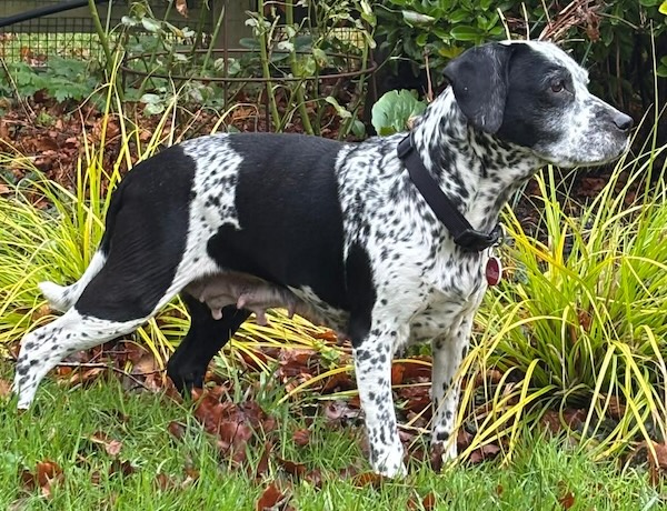 Dottie is 12 years old and loves people. She is beautifully marked with a shiny coat and we suspect she is crossed with a cocker spaniel. She is a striking looking dog. The previous owners say Dottie was fine with their grandchildren. She was allowed to sit on beds and sofas but this has not been permitted in the foster home as It would be a cause of jealousy between her and the fosterer’s dogs.