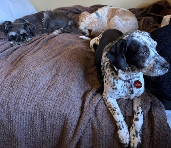 Dottie is reported to have lived with a cat. We have not tried her with cats in the home but when one runs past us outside she reacts like she would like to give chase if she wasn’t on a lead. Dottie shows separation anxiety and gets distressed and will bark if left. This is lessening overtime but it will take time for Dottie to be comfortable being left on her own. Dottie follows you from room to room at present and wants to be curled up near your feet or by your side to feel settled and safe. This applies in the car as well and she gets worried and barks if you leave her in the car alone.