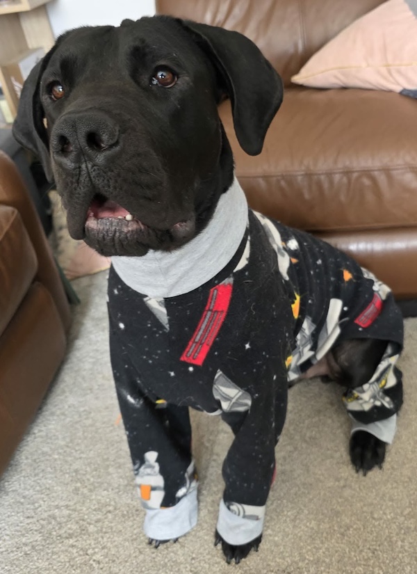 Baloo is a big dog, with a big heart! It is an absolute pleasure fostering him. He gets on well with our two resident dogs, he enjoys playing with them, cuddling up with them, and takes a lot of confidence from them when out on walks. However, Baloo can sometimes food guard or grumble about sharing affection from his fosterers with the other dogs. This is being managed and he is improving but it would need to be carefully managed with training if he was to be rehomed with another dog.