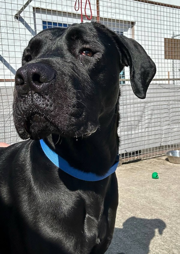 Baloo is a big dog, with a big heart! It is an absolute pleasure fostering him. He gets on great with our two resident dogs, he loves playing with them and cuddling up with them. Baloo also takes a lot of confidence from them when out on walks so we think he would be best suited to a home with a dog companion. Baloo can be nervous in new situations and when meeting new people, and shows this by leaning or pulling away. When on walks Baloo can find busy roads and/or lots of people overwhelming but this is something we’re working on with him.