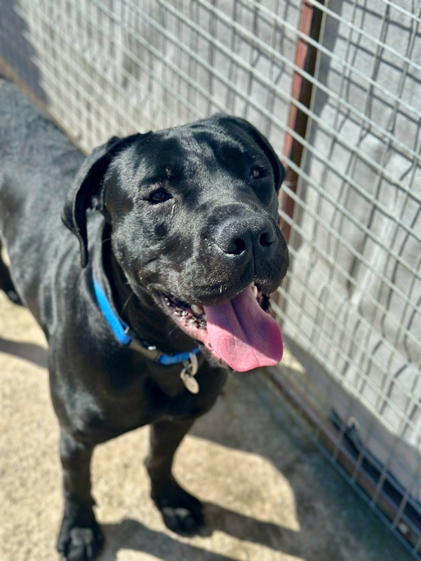 In the home Baloo loves cuddling up on the sofa, playing with his toys (he’s a strong chewer!) and playing with our dogs. He likes to be in the same room as you; he’s great at spotting any spillages while you’re cooking! We also have cats who he gets on well with most of the time. He will occasionally chase them if they’re running but we are working on stopping that. Baloo has also shown that he is good around children, but doesn’t realise quite how big he is so would be better suited with older children that he’s less likely to accidentally knock over! Baloo steals the hearts of everyone he meets, whoever adopts him with be very lucky to have him in their lives.