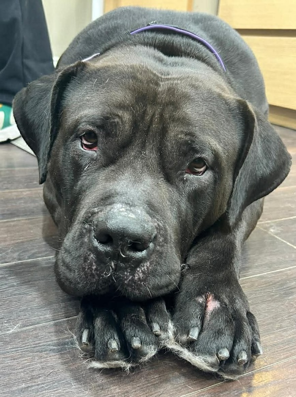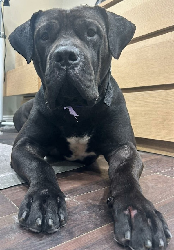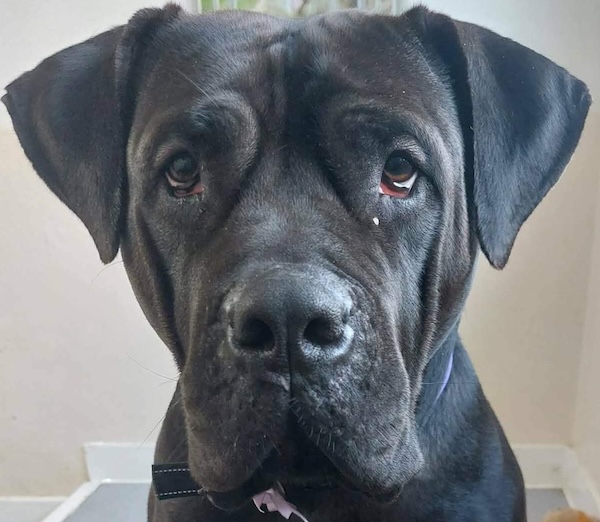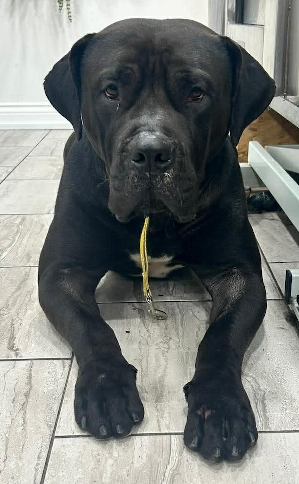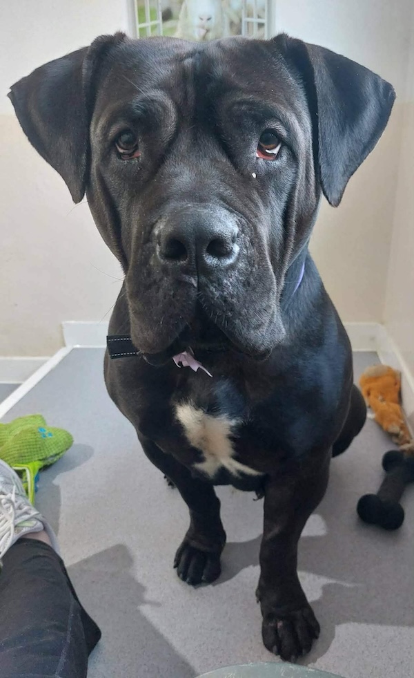 Ebony is a beautiful Cane Corso lady – we are not sure how old she is but the vet estimated she was approximately 1 year of age. When Ebony first came to us, she was very frightened and shut down – she didn’t even want to leave her kennel. However as the weeks have gone by, she has grown in confidence and enjoys the company of her human visitors to her kennel. She is an incredibly gentle and calm lady who takes treats gently and loves a good fuss and lots of affection. She enjoys playing with her toys and has enjoyed a number of trips out. She particularly loved a pamper in a nearby grooming salon and won a lot of hearts with her gentleness.