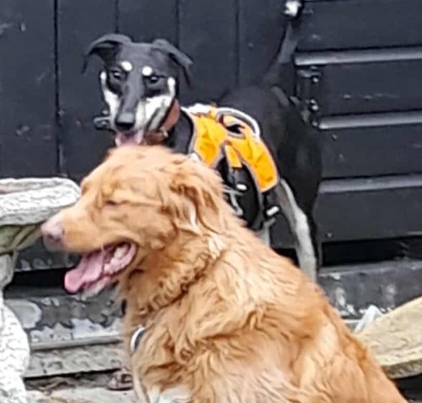 She is very spooked out on a walk and tries to run away from things that frighten her so won’t be able to be let off the lead. She has low prey drive and good food manners. She would love a large garden in her new home with lots of room for her and her new doggie friend to chase around in. It would need very secure high fencing with no escape holes as at first, whilst still settling in she will try to escape when she’s frightened, she likes trees and bushes to hide behind so she can watch people without being too close. When you have eventually gained Echo’s trust she tolerates being stroked and I think one day she’ll grow to really enjoy it. With the company of another dog she will settle down on the sofa as long as people sit still and aren’t too close. In time Echo will make the right person a loyal companion and will enjoy playing games with them too.