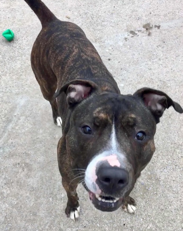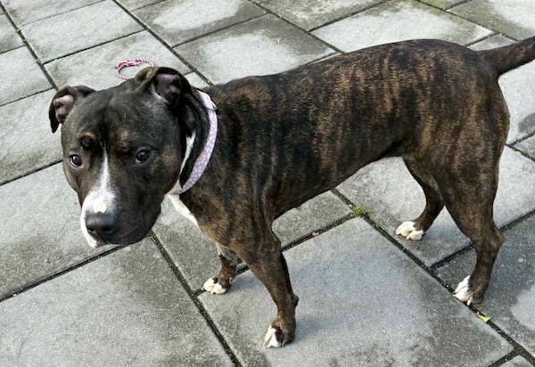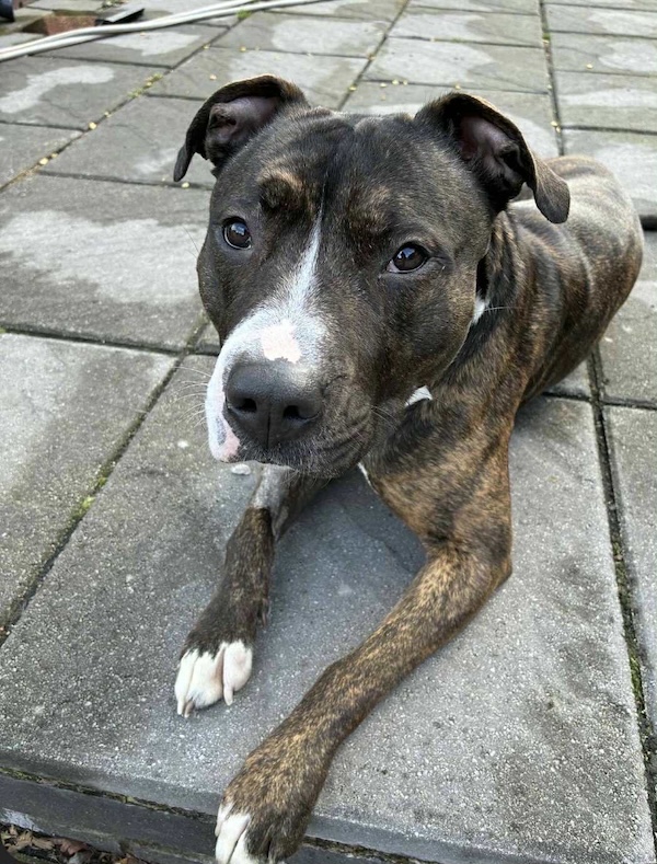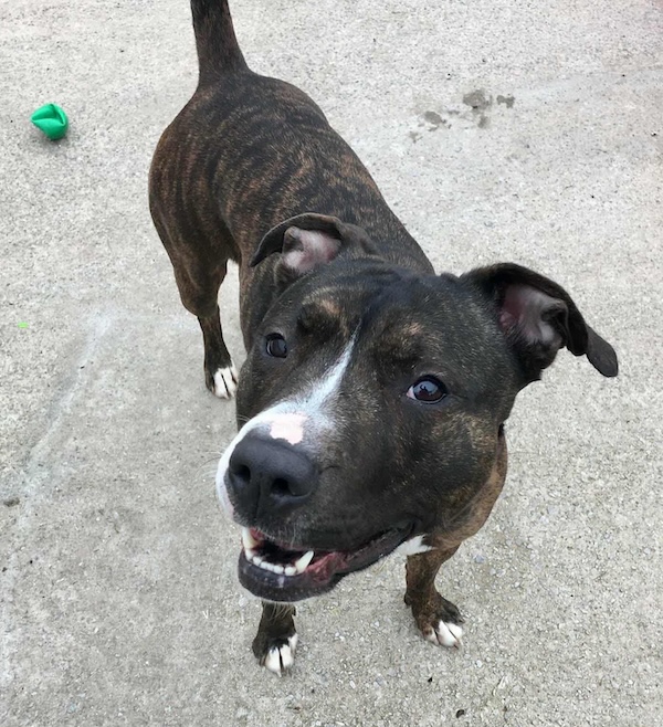 Lovely Eden is an energetic staffy cross, we don’t have an exact age at the moment, but with the way she acts we can tell she is young. She loves to play, and when you throw a ball or toy for her she will chase it, but isn’t keen on returning it to you.