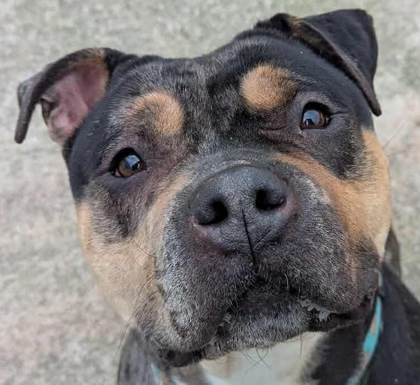 Egypt is a new arrival at Homeless Hounds and is currently under assessment. She is a bully type dog who is about the size of an English Bull Terrier. She loves humans and is very friendly. Egypt also appears to be dog friendly. We will update this profile as we get to know more about her.