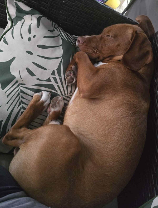 On the plus side Freddy is extremely smart and loves brain games. He is a very quick learner too. Freddy LOVES people and whilst he sleeps in his own bed at night, he will try to sneak in with his humans if given half the chance! Freddy can still be hit and miss with other dogs due to his early experience but this will improve given his young age with time, patience and persistence. He can be an anxious boy at times but in a stable environment he will relax and this will improve. He does suffer from separation anxiety so he needs someone around for most of the day and to help him with this. He is needy boy and loves to be round his humans.