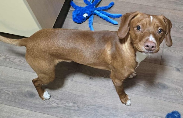 Freddy is a 10 month old small crossbreed. When fully grown he may be spaniel size. We are told he is a cocker spaniel/ dachshund cross. Freddie came in to us after the resident dog in his home took a dislike to him as Freddy is a lively pupster!