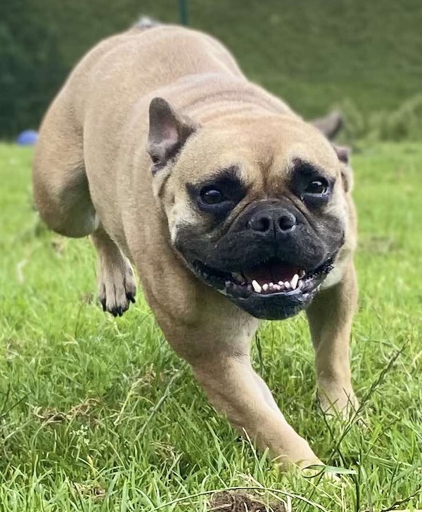 Penny appears to be dog friendly and if anything is indifferent to them. She’s quite a small frenchie and is happy being handled and carried like a little princess. We don’t think Penny will be with us for long, she’s a real all-rounder and would make an amazing addition to any home.