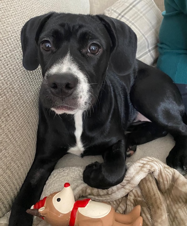 Due to her prey drive, Pumpkin cannot live with rabbits or other small animals. She can be a little boisterous when excited, so we feel she’d be best matched with children aged 8+. She is wonderful with children and especially enjoys cuddling up with the 10-year-old boy in her foster home.