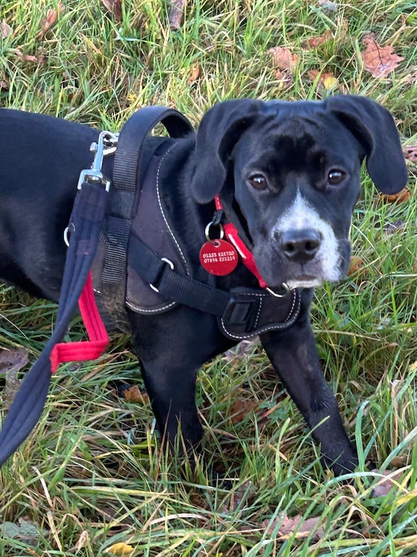 She does show some mild separation anxiety and may whine when left, so she’d suit a home where someone is around most of the day or where she has the company of another friendly dog. With patience, reassurance, and consistency, she’ll continue to gain confidence.
