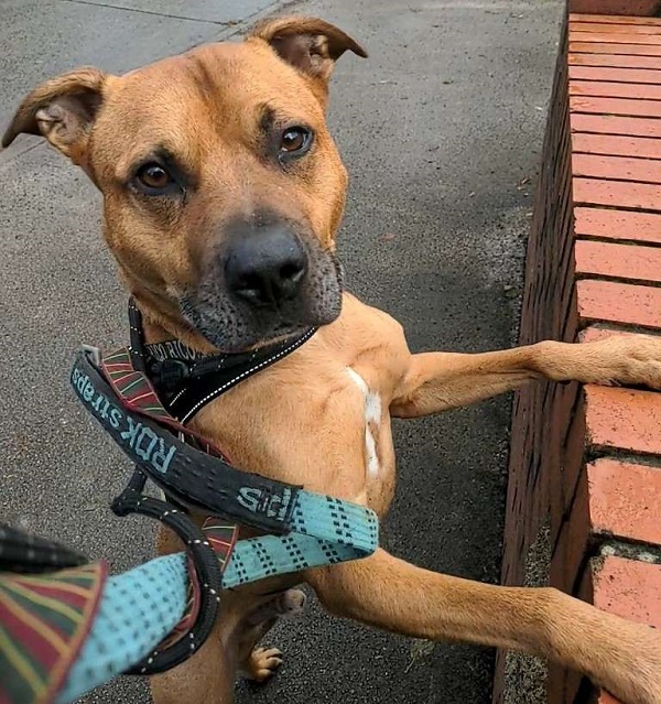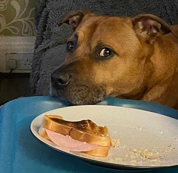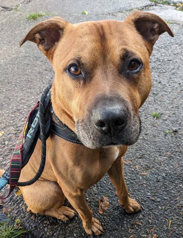 On walks, he wears a harness and a double ended lead. Rico also wears a muzzle on walks as he is anxious/reactive near other dogs. This is constantly improving when seeing other dogs now and he is a lot less stressed as time has gone on. He walks well on a short lead and is easy to walk around people being obedient and sitting at the kerb.