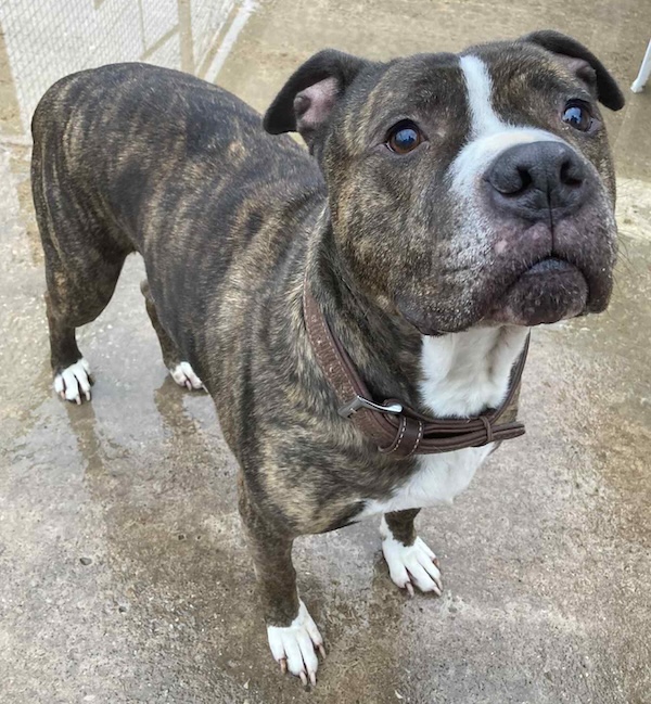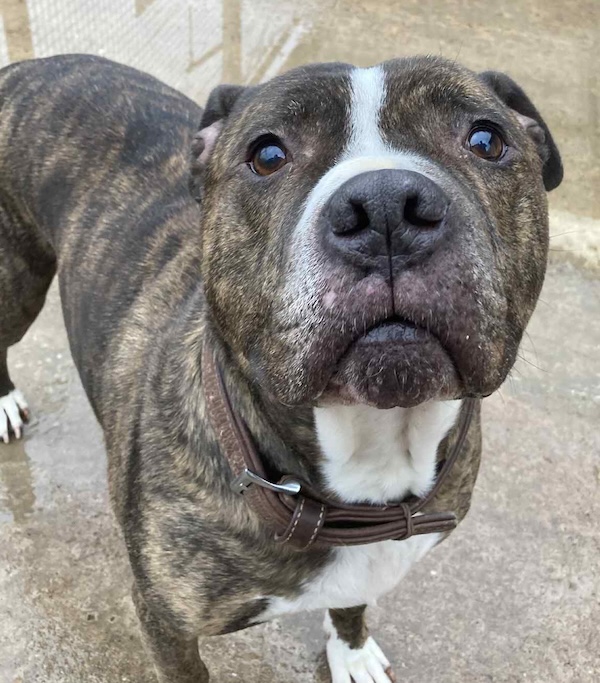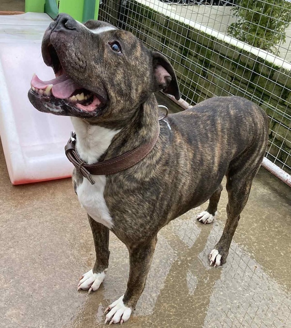 Ted is a 7 year old staffy cross who came to us after his owner died. Ted had been a much loved pet and his late owner’s family were devastated to have to give him up. Ted is cat friendly and has lived with a couple of cats without any issue at all. In fact, he was in awe of them and didn’t bother them at all.