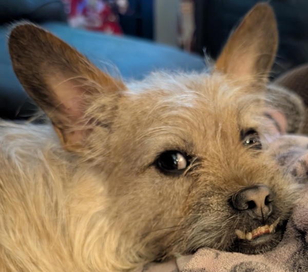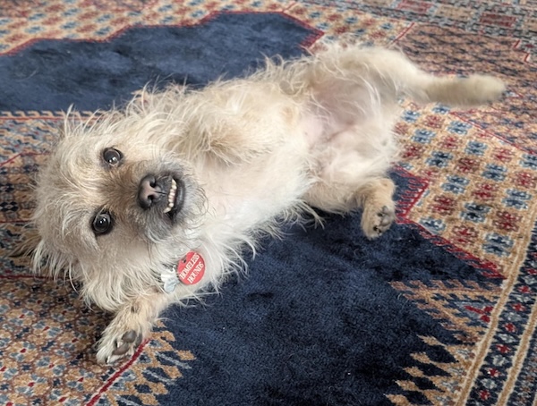 He has such a cute expressive face and loves to touch your arm with his paw and stare deep into your eyes. If he is not sure about something he becomes very submissive and rolls over for a tummy rub for reassurance. He has a long wiry cream coat but does not shed hair, was well behaved with people and other dogs at the groomers and travels well in the car. Ideally, this lovable little fellow needs an owner who will not leave him for long lengths of time, and who has time and patience for training. He just wants to love and please you and be your little shadow.